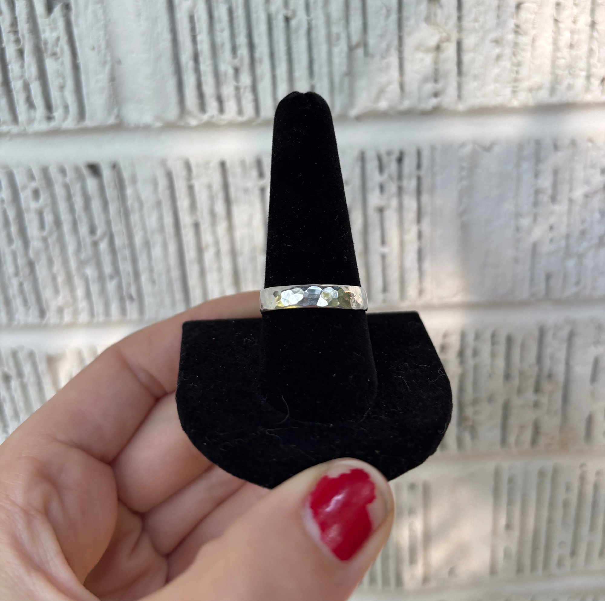 Hammered sterling silver ring band, size 10.5.